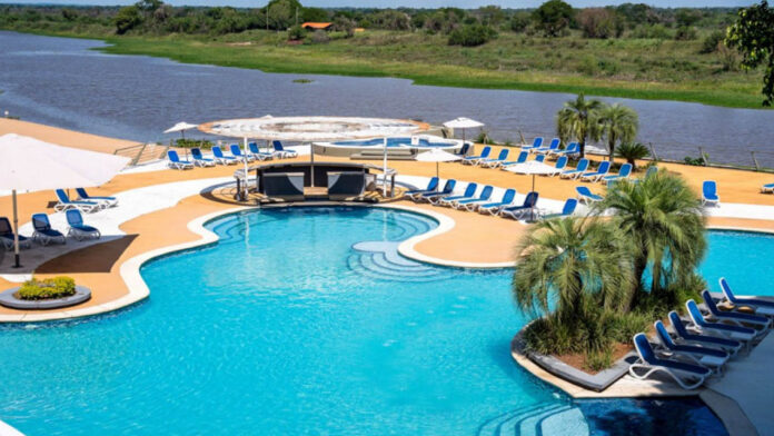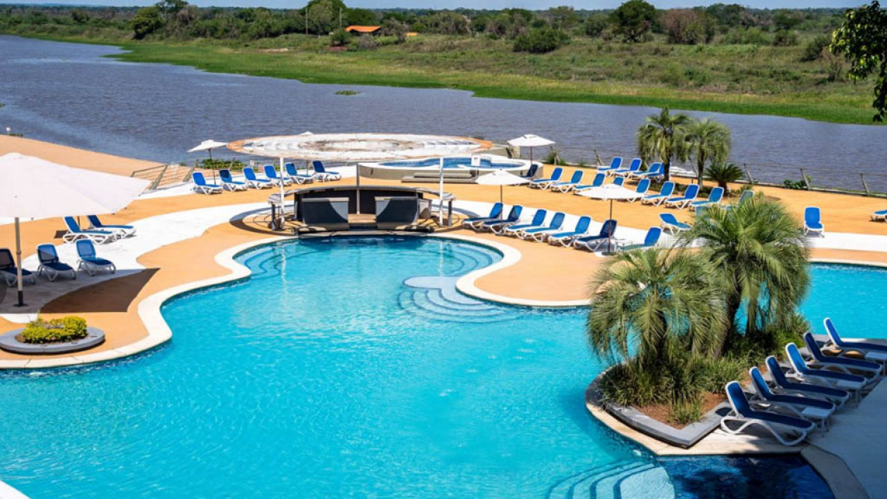 El resort cuenta con 121 habitaciones estándar, 2 suites ejecutivas y 8 suites de lujo con vistas al río Paraguay, además de instalaciones deportivas que incluyen canchas de tenis, campo de golf, áreas para deportes acuáticos y espacios dedicados a los más pequeños.