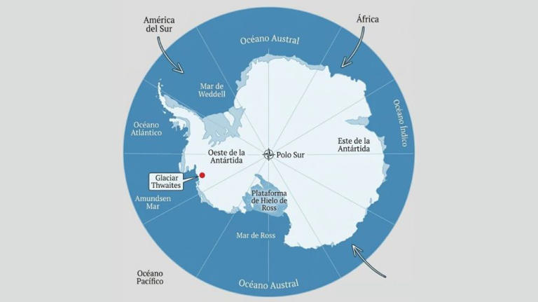 Esa configuración convierte a Thwaites en una verdadera “puerta de entrada” al colapso de gran parte de la Antártida Occidental. Si el glaciar se desestabiliza por completo, podría arrastrar consigo enormes volúmenes de hielo del interior del continente.