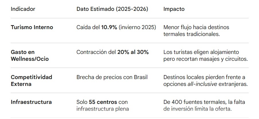 - La Brecha: Se está acentuando una división; el wellness de lujo se mantiene estable, mientras que las termas familiares sufren la falta de poder adquisitivo del mercado interno.