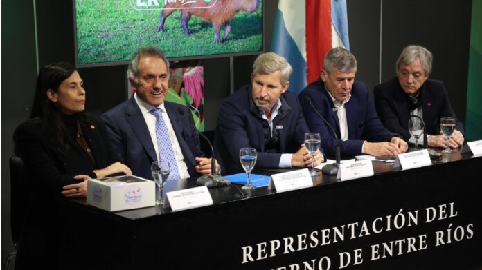 El secretario de Turismo, Ambiente y Deportes, Daniel Scioli, participó esta tarde del evento en el que Entre Ríos presentó la oferta de actividades y atractivos preparados para recibir a los visitantes esta temporada en su jurisdicción. Lo hizo junto al gobernador, Rogelio Frigerio, en la casa de la provincia.